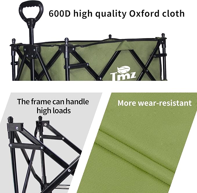 TMZ Collapsible Folding Wagon Cart, Outdoor Utility Garden Cart, Heavy Duty Camping Wagon with Big Wheels, Foldable Wagon for Sports, Shopping, Fishing and Beach-Green