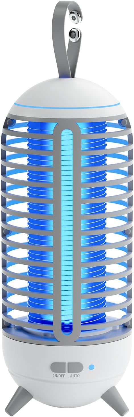 - [Warm light and purple light two in one] This is a portable exterminator with powerful functions, it can not only help you destroy bugs, but also provide you with desk lamp-level lighting, which means if you take her outdoors camping, it can completely replace your camping light while destroying flying bugs.