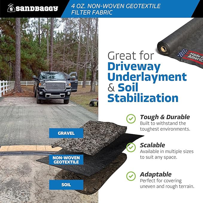 - MULTI-PURPOSE APPLICATIONS – Perfect for French drains, gardening, landscaping, driveway underlayment, erosion control, soil stabilization, rip rap, and retaining walls. This fabric adapts to diverse projects with superior performance.