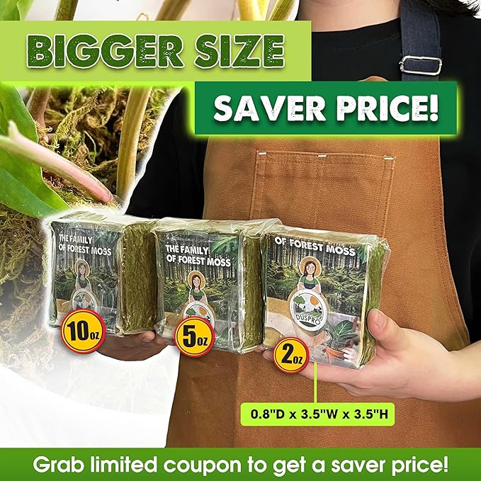 - ππ πππππππ ππππ-ππππππ ππππ: Made from 100% hand-picked and sun-dried forest moss. Our long-fibered moss is distinct from typical sphagnum or Spanish moss, which ensures a natural and efficient solution. EACH PACK CONTAINS 56 GRAMS (APPROXIMATELY 2 OZ) OF DRIED MOSS, WHICH CAN EXPAND UP TO 1.8 QUARTS IN VOLUME WHEN SOAKED IN WATER.