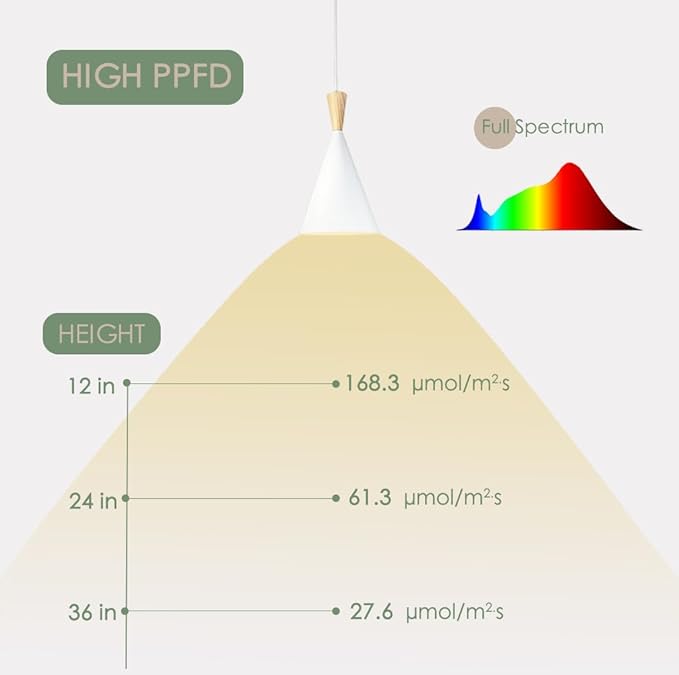 - Energy efficient, High PPFD: The solid led grow light bulb for indoor plants producing a remarkable PPFD 168.3μmol/㎡*s at 12in, while only consuming 20Watts of energy at 120V input.