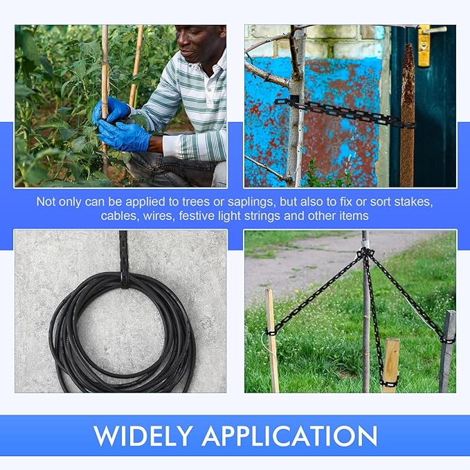 - Practical Design: the tree cable ties are practical and useful tools, which can ensure trunks and branches without the ties cutting or growing into bark, and provide protection for your small trees and plants in rainy and windy weather, and help correct the skewed trees and plants
