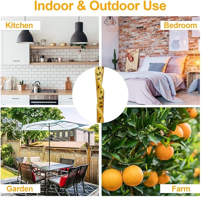 - Versatile: fly strips indoor sticky hanging is heat resistant and UV resistant. Bug strips indoor for home great for kitchens, balconies, gardens, orchards, horse barns, farm, etc. Insect glue ribbons can effectively catch flies, gnats, mosquitoes, moth and winged insects