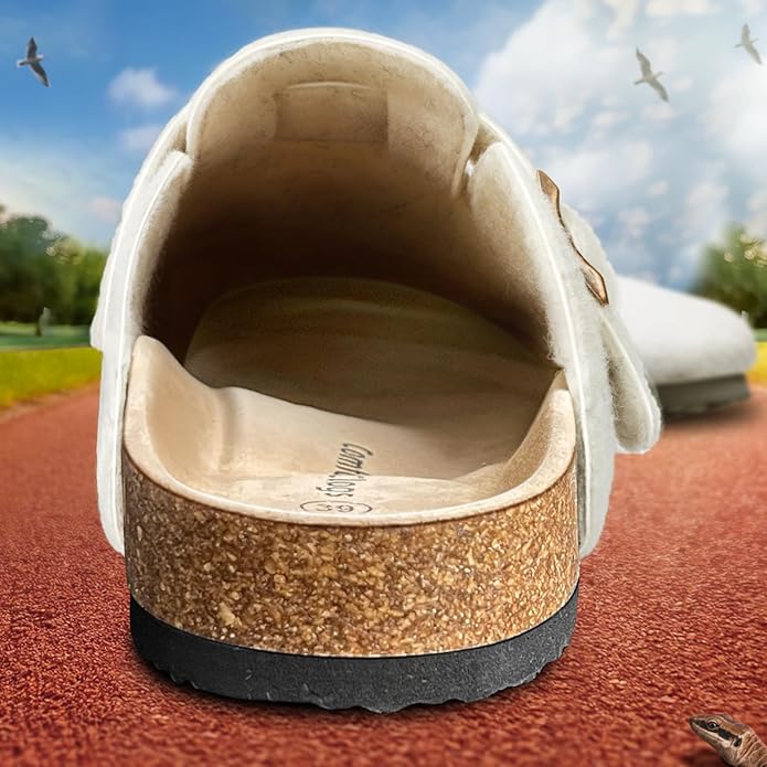 • SUPPORTIVE--CUShioned sole with cork-footbed and Super soft insole of sueded PU;