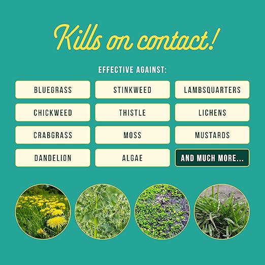 - FAST AND EASY: When it comes to stopping weeds, one warrior stands above the rest! Our organic weed and grass killer dehydrates weeds on the spot. Just point, shoot, and spray.