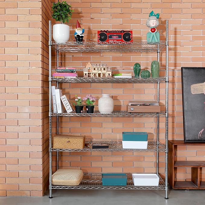 Land Guard 5 Tier Chrome Storage Racks and Shelving - 48" L x 20" W x 72" H Heavy Steel Material Pantry Shelves - Each Unit Loads 350 Pounds Wire Shelf, Suitable for Warehouses, Closets, Kitchens