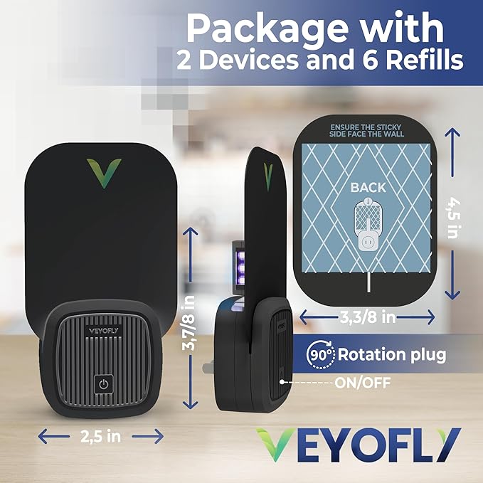 VEYOFLY Fly Trap Indoor, Fruit Fly Traps for Indoors, (2 Device + 6 Refills) Gnat Traps for House Indoor, Fly Catcher Indoor, Plug in Light Flying Insect Trap, Bug Light Killer, Fly Trap