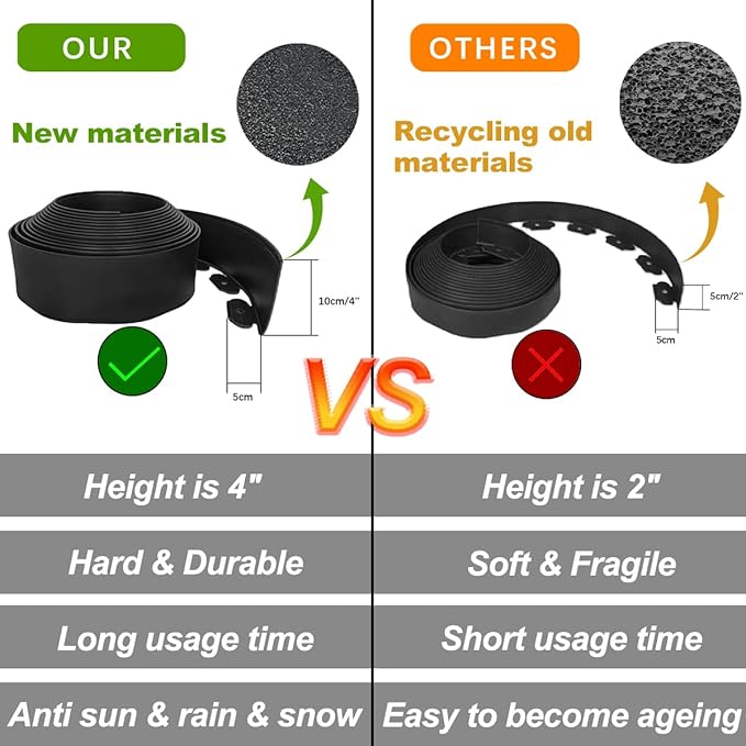 - < Durable & Flexible > Landscape Edging is made of premium PE material,which is flexible to be made straight or curve easily according your need. Easy to cut and durable to withstand the tough sunlight , heavy rain, snow etc.