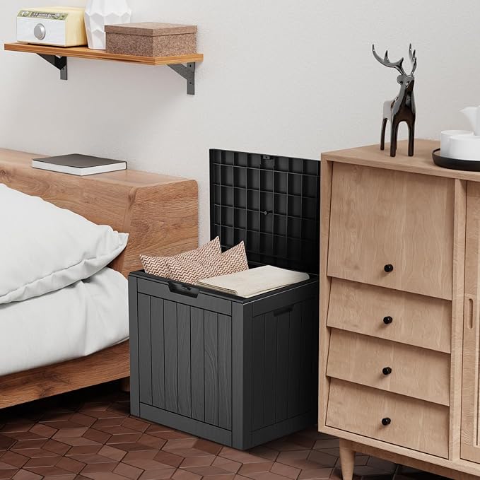 - ๐๐ฎ๐ซ๐๐๐ฅ๐ ๐๐๐ญ๐๐ซ๐ข๐๐ฅ - Made from high-quality resin material, this deck box provides unyielding protection for your belongings. With up to 1000 SGS UV protection, your outdoor storage box will never warp, fade, or crack. It withstands harsh weather, intense sunlight, and cold climates. Whether it's the sun-drenched summer or the stormy winter, your items will be safely stored, remaining in pristine condition.