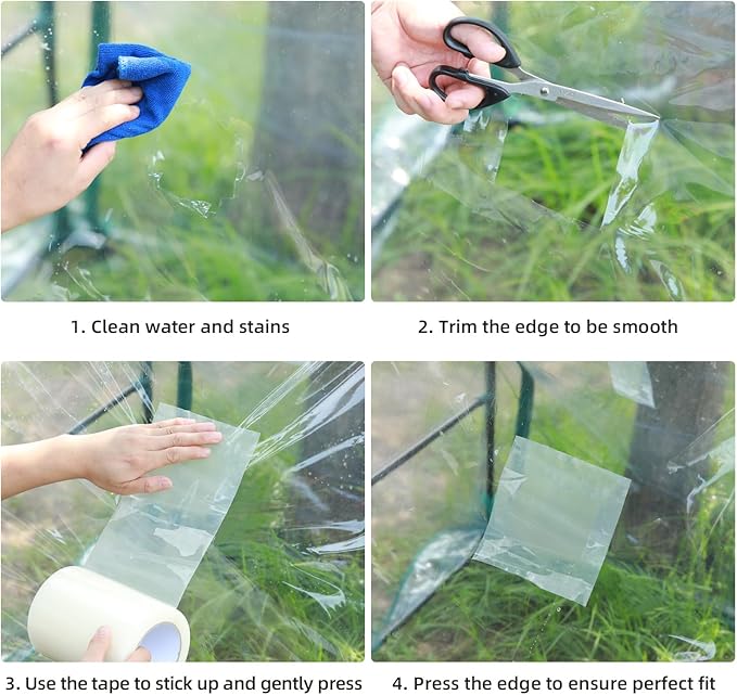 - Versatile Application: Ideal for repairing greenhouses, tents, awnings, polyethylene films, and waterproof fabrics. Suitable for indoor and outdoor use, easily cut to size for fixing film cracks and maintaining temperature balance inside the greenhouse and promoting healthy growth of vegetables or plants