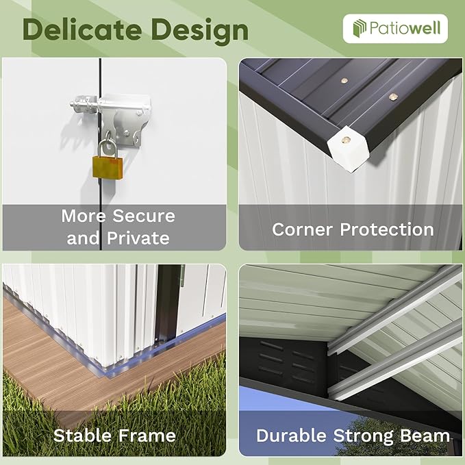 - Durable & Sturdy Structure: The sturdy frame structure can provide enough stability to the shed, and the galvanized sheet material is rust and UV resistant with a long service life. Each panel is closely connected, and has good weather resistance.