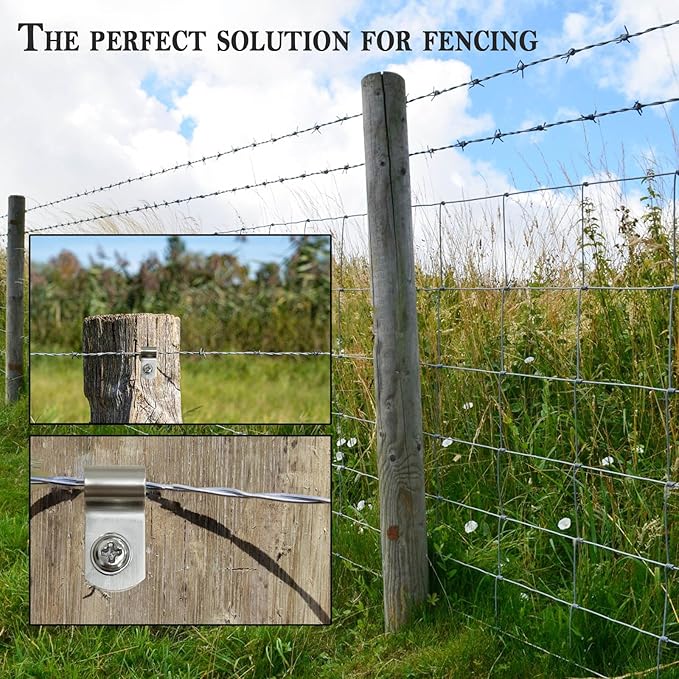 - 🚧【BESTEEL Upgraded Wire Clips】The Agricultural Fencing Fence Wire Clamps and Screws made of high-strength T304 stainless steel, The quality material is rust-resistant and has excellent oxidation resistance for durability, so you don't need to worry about them rusting and breaking. Protect your pets or your farm with these durable outdoor fence line mounting clips. Stainless steel Fences Mounting Clips provides longer service time on a project.