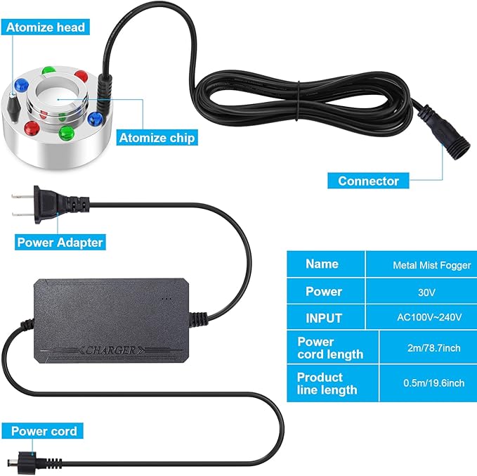 FITNATE High Power Mist Maker, 1500ML/H Large Volume Mist Fogger with 6 LED Light Fog Machine Atomizer for Halloween, Pond, Garden, Rockery,Yard