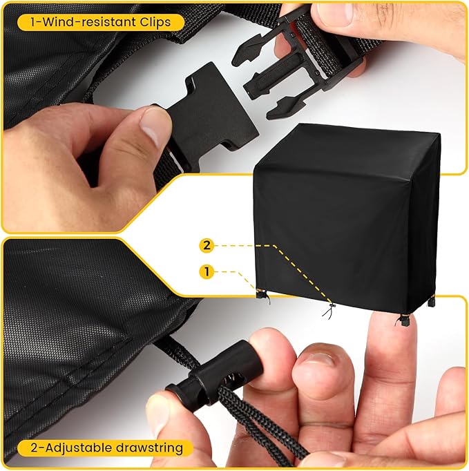 - - Features adjustable drawstrings and 4 windproof locks to keep the cover securely in place during strong winds
