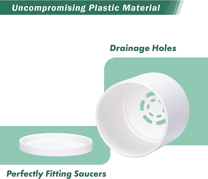 - What's Included: Set of 18 white plastic pots with saucers, 2.5" in Opening Diameter, 2.5" in Height. Please double-check the size before ordering to ensure it meets your needs.
