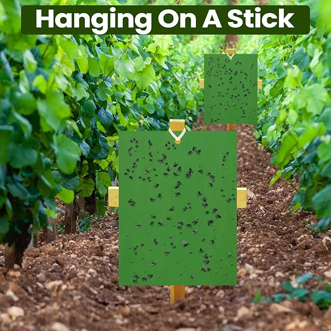 - Double Sided Stickiness: our green sticky traps are designed to be double sided, widely catch the most pests, includes white flies, leaf miners, fungus gnats, shore flies, midges, mosquitoes, and other flying insects, you can place them in the garden, lawn, yard, next to the trash can and so on