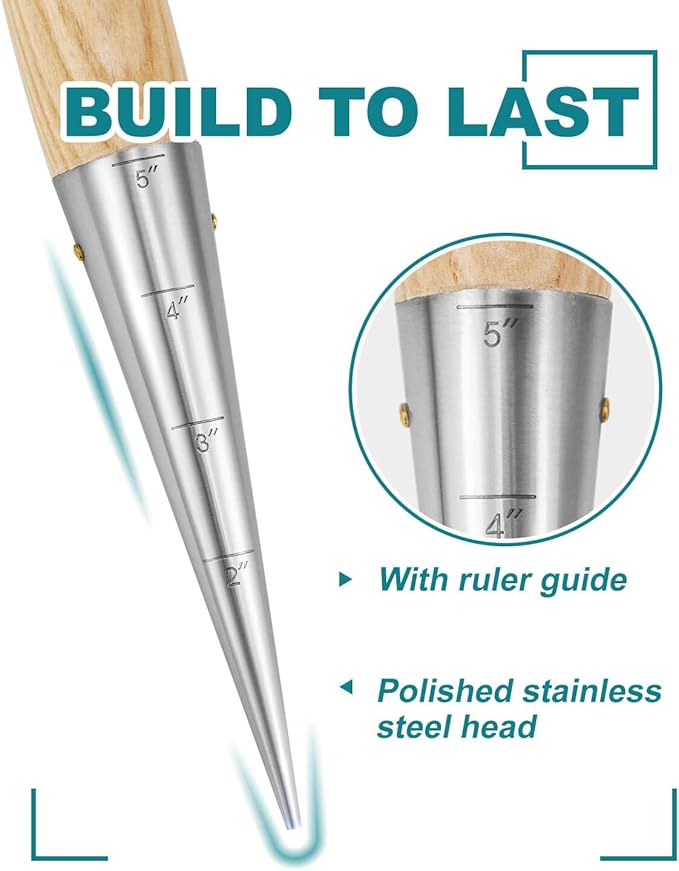 - UNRIVALED QUALITY - This hand dibber is hand-forged from stainless steel and fitted with ash hardwood handle for long lasting sharpness and durability. Short, compact, it can be easily stored in any tool bag, shed or garage.