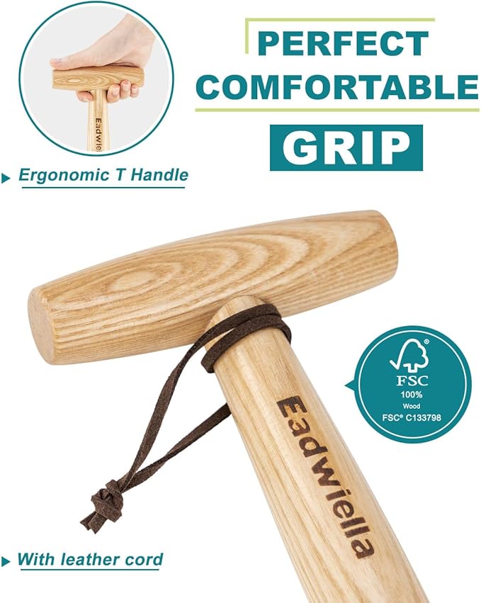 - COMFORTABLE HANDLE - The ergonomically designed hardwood T-handle provides a comfortable grip, reducing hand stress and tension. It also has a leather loop for easy storing and hanging. For those with good taste, this is a beautiful and elegant garden tool.