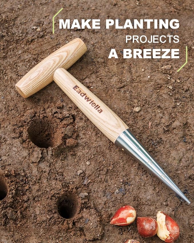 - READY FOR THE PLANTING SEASON - Eadwiella Dibber were designed to make planting bulbs, seeds, and small herbaceous plants easy, by creating the perfect diameter hole to the correct depth. Before using the dibber in your garden make sure the soil is well tilled as it will make using your garden dibber easier. Simply press the dibber into the soil while twisting it back and forth until the dibber is at the desired depth. Now youโre ready to plant your bulb or seed!