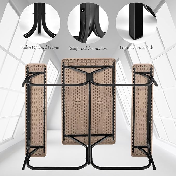 - 【Sturdy and Rust-Resistant Steel Frame】The steel frame is powder coated with rust-resistant finish, super smooth. The table bench set frame is made of reinforced steel to ensure sturdiness and stability, durable and perfect for use for years.