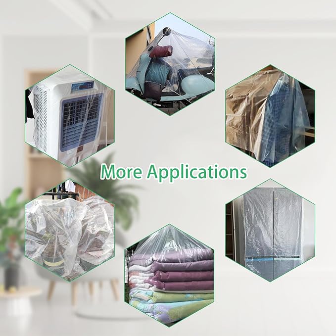 - [More Uses] You can cover our plastic covers on daily necessities, such as furniture and clothes, to protect them from dust and moisture. They are also suitable as temporary and simple tarpaulins to keep out the wind and rain, or to prevent windows from freezing in winter.