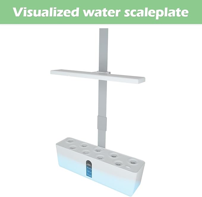 - Intelligent Water Deficiency Protection: When the water level is lower than the standard water level, the water pump will sound an alarm and the machine will start automatically after adding water. Every 10 minutes, the smart water pump will cycle on and off to provide sufficient oxygen to the plant roots.