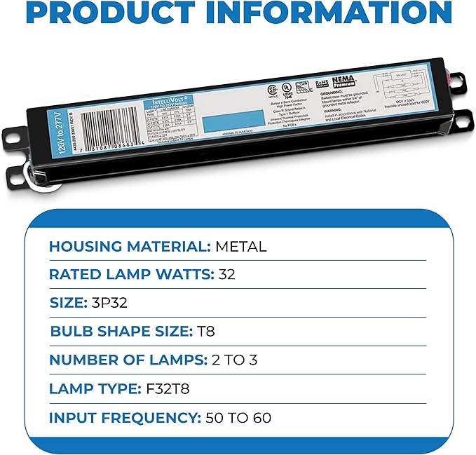 - HIGH QUALITY MATERIALS: This fluorescent ballast is made from premium quality metal, certifying long-lasting durability and high quality. These ICN3P32 quick start electronic fluorescent ballasts are a perfect option for your fluorescent F32T8 lighting fixture.