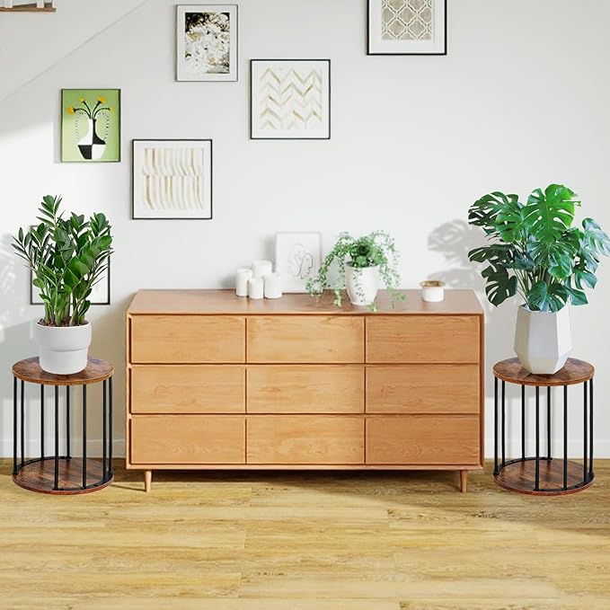 HDANI Wooden Stool Set of 2 for Kids, Adults - 300lbs Load Capacity Garden Round Wood Stool, Non-Slip Small Step for Plant Stand, Kitchen, Bathroom and Bedroom, Brown