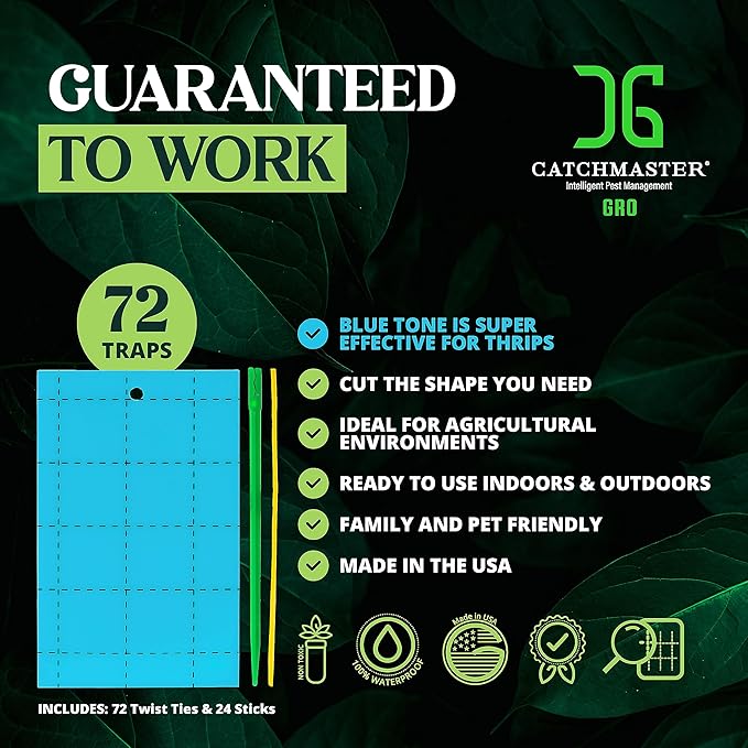 Catchmaster GRO Blue Regular Double Sided Sticky Traps 72PK, Adhesive Bug & Fruit Fly Trap, Pest Control for Home, Farm, Garden, Hydroponics & Greenhouse, Protect Live Plants Indoor & Outdoor