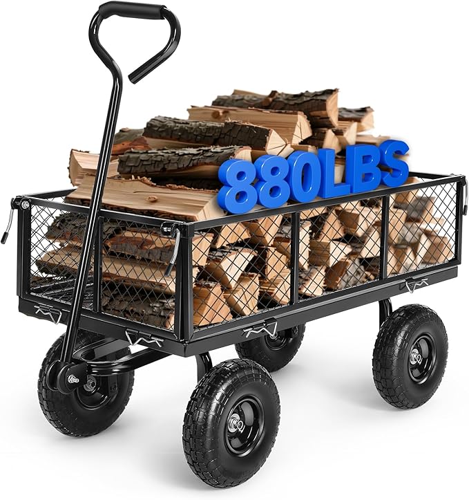 - Heavy-Duty Performance – Built for Big Jobs. This wagon cart is a true workhorse, capable of carrying up to 880lbs with ease. Whether you're hauling firewood, soil, or patio furniture, this utility wagon is the go-to solution for heavy-duty tasks around your yard, garden, or campsite. Say goodbye to multiple trips—this yard wagon gets it done in one go