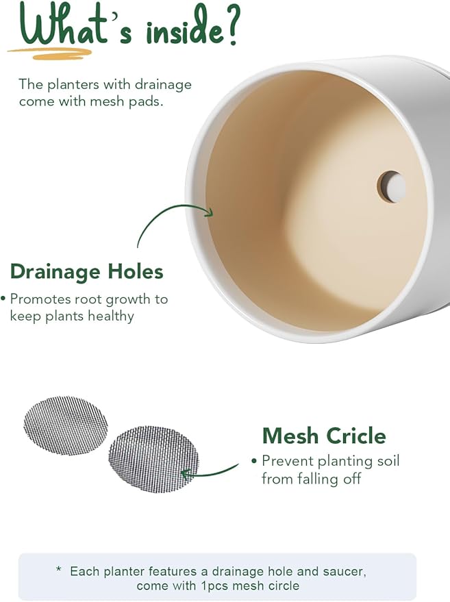 - Healthy Growth, Happy Plants: Each plant pot features a drainage hole and tray for healthy roots—ideal for pothos, snake plants, aloe vera, basil, monstera, fiddle leaf fig, and more (real or artificial)