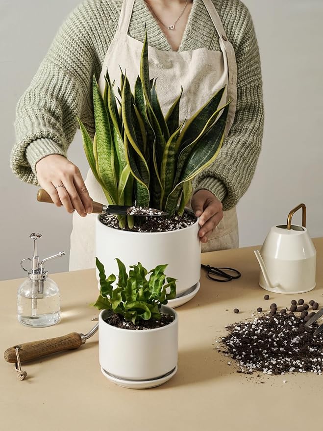 - Smarter Versatile Set: Enjoy both an 8 inch plant pot and a 10 inch plant pot—ideal for layered, stylish displays on desks, plant stands, or windowsills. Easy plant care with drainage holes, integrated saucers, mesh, and rubber pads. (Plants not included.)