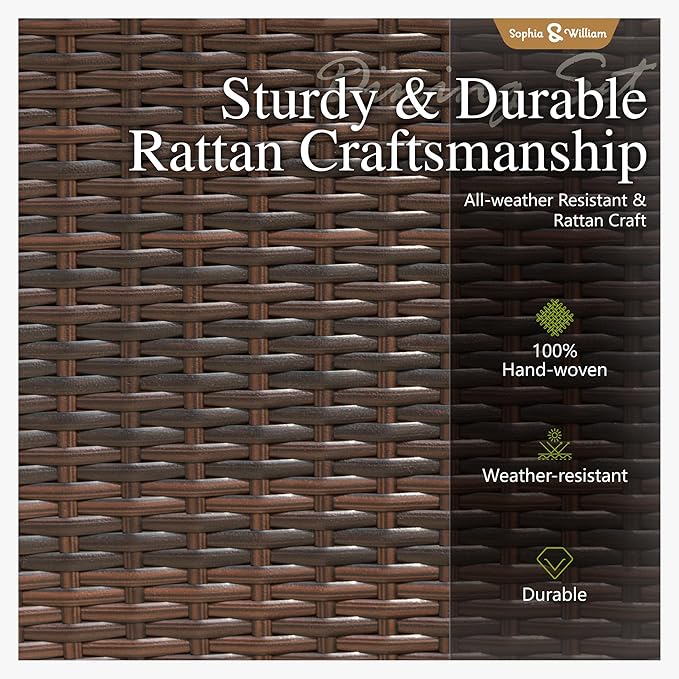 - Durable Rattan Material: Our outdoor dining chair features exquisite handwoven PE wicker, providing a sophisticated and elegant look that enhances any outdoor setting while offering superior durability. Load capacity: 330 lbs. Dimension: 22.8" D x 24" W x 34.5" H, seat: 19.5" W x 19.5" D