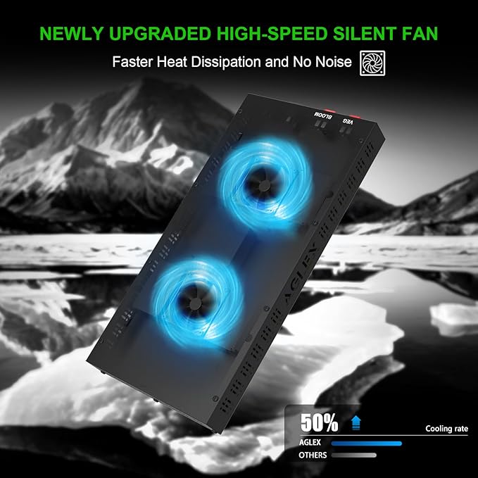 AGLEX E2000 LED Grow Light, Full Spectrum Grow Light with UV IR Diode, Grow Light for Indoor Plants with Daisy Chain & Built-In Silent Fan, Plant Growing Lamps for 2x3 FT Coverage, Veg Bloom Daul Mode