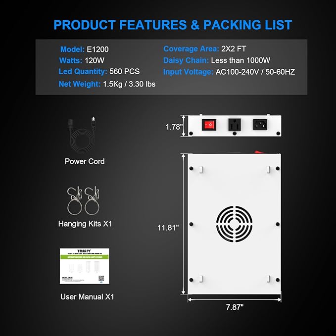 - 🌞【HIGH YIELD & LOW COST】One 120W led grow light designed with 560 high quality LEDs. Compare with the traditional 480W HPS lights, but consuming only 120W, you can save up to 60% on your electricity bill.