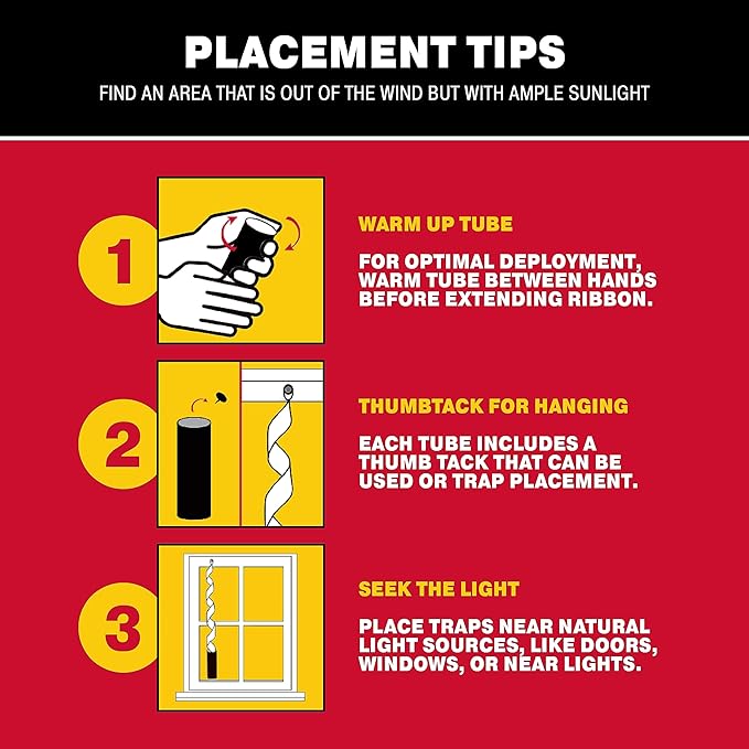 - READY TO USE: Bug and Flying Insect glue ribbons are designed to be used right out of the box. Ready to use without other bait, the traps are fast-acting and easy to install. For best use, hang traps in areas where flies and bugs are most populous. Scented with a non-toxic formula to attract insects, the Scented Fly Ribbon is safe to use indoors and outdoors. Our products are tested under the harshest field conditions to ensure maximum reliability for any level of pest control expert.