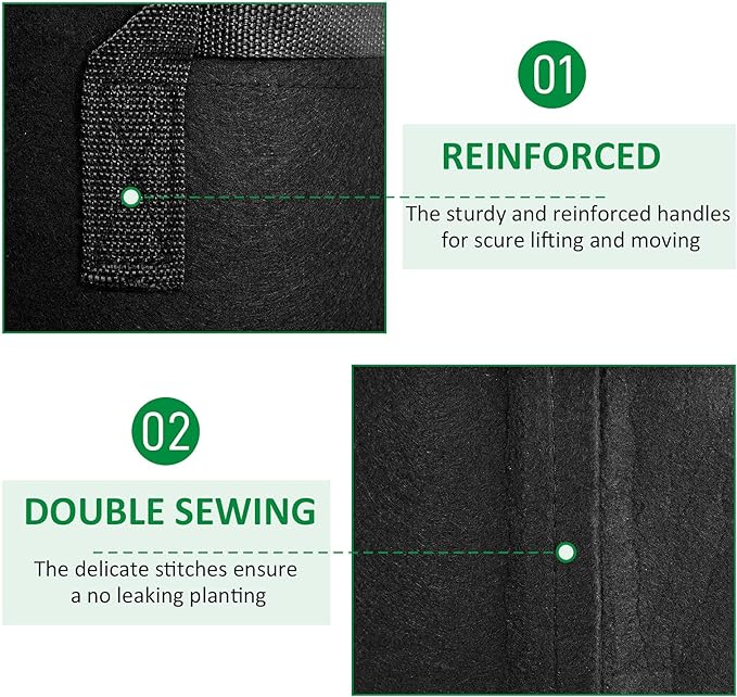 - Handle process: Wide polypropylene ribbon handle, better tension, handle reinforcement lining, easy to move bags filled with soil and plants