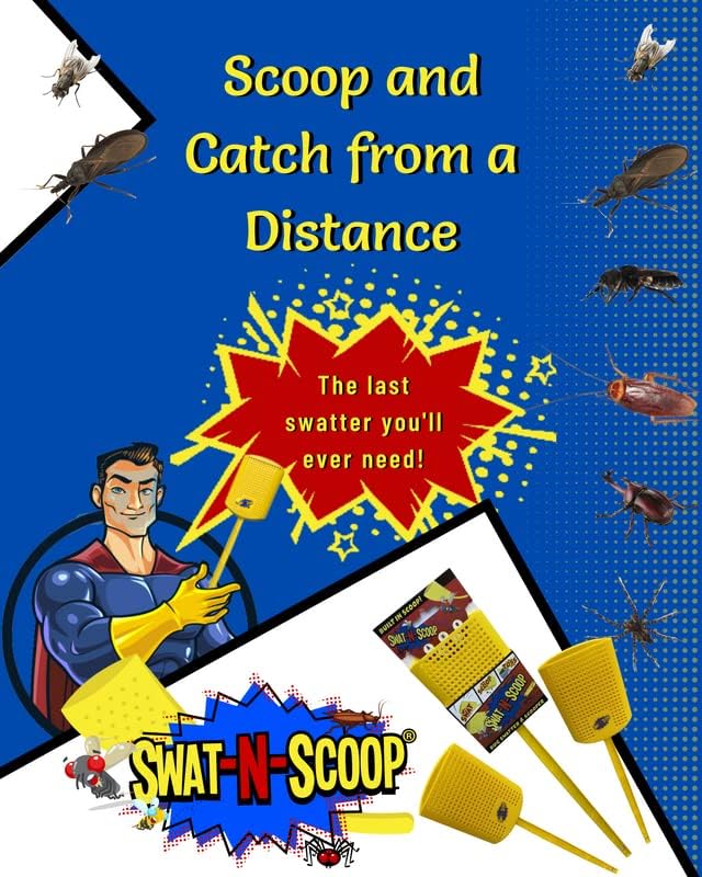 - Scoop And Catch Bugs And Spiders From A Distance. At 18" In Length, You Can Reach Ceilings And High Walls To Swat Flies And Other Bugs From A Safe Distance. Then Conveniently Scoop Them Up And Flick Them Outside Or Into The Trash.
