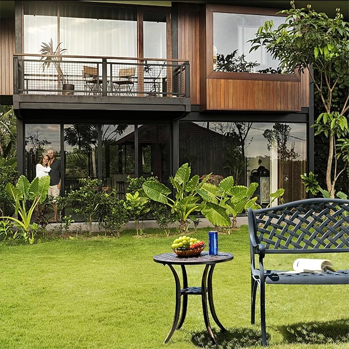 - High Quality: This round side table is made of cast aluminum, which make it rustproof, weather-proof for outdoor. It can last for many years.