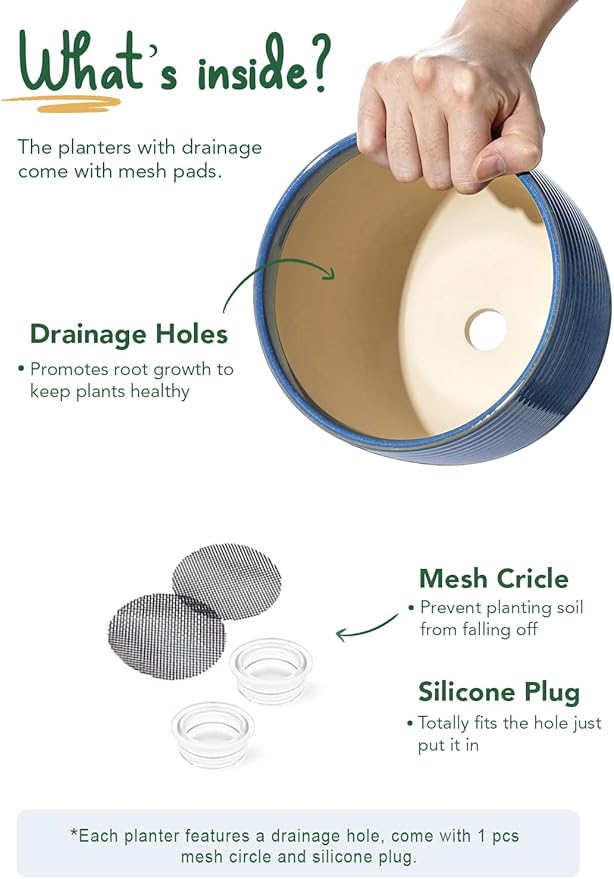 - Thoughtful Accessories: Our flower pots for indoor plants include silicon plug and drainage hole net, giving you full control; let roots enjoy moisture while avoiding excess water; seal with a silicon plug to prevent leaks or use a mesh pad to retain soil and provide optimal ventilation (Plant not included)