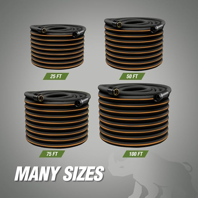 Rugged Rhino Heavy Duty Flexible Light Weight Garden Hose, 25ft x 5/8in, 4 Layer Leakproof Outdoor Gardening Tools, Watering Supplies, Powerful Water Pressure for Lawn, Flowers, Black Orange