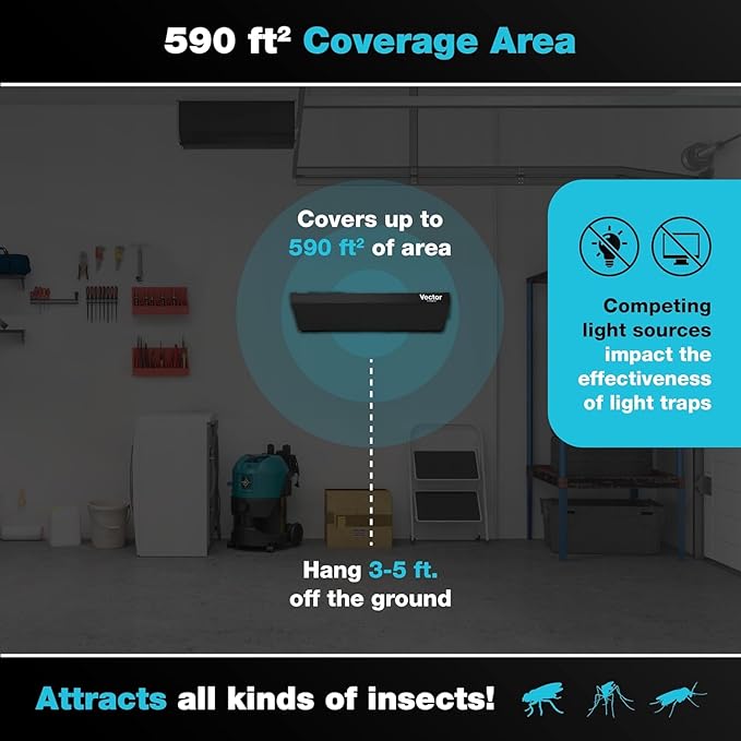 Catchmaster Vector Optima Light Trap, UV Light Fly Traps for Home, Gnat Traps for House Indoor, Shatterproof Bulbs, UV Lamp Insect Killer, Bug Catcher for Kitchen, Garage & Warehouse - Black