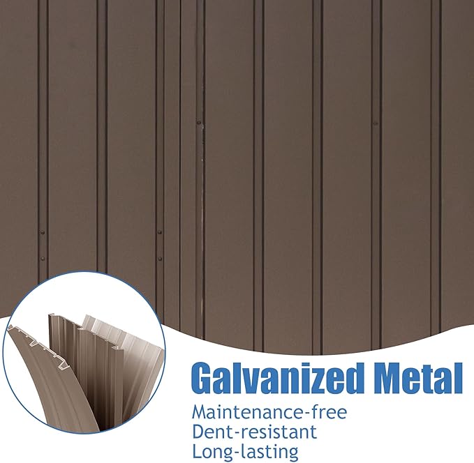 Domi Outdoor Storage Shed 6' x 4.5’, Metal Garden Shed with Galvanized Steel Frame for Bike, Tools, Lawn Mowers, Pool Toys, Outdoor Storage Cabinet with Lockable Door for Garden Lawn Patio (Brown)
