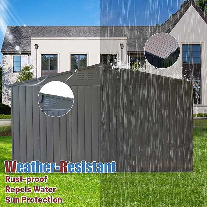- 👉DURABLE STURDY CONSTRUCTION: This storage shed adopts a thicker galvanized steel frame and the roof is supported by a sturdy metal beam structure, which is rust-proof, waterproof, UV-proof, and maintains the ability to resist bad weather for many years, dedicated to outdoor use. The column and the top are thickened to increase stability and durability.