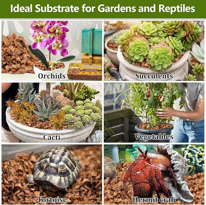 - Wide Application: Coco chips are suitable for garden planting, indoor flower pots, potting mixes, raised garden beds, etc, promoting healthy root growth and rapidly expands the root system; Ideal for cacti, succulents, herbs, vegetables, microgreens and hoyas; It can also be used for reptile substrate and improve the living environment for pets