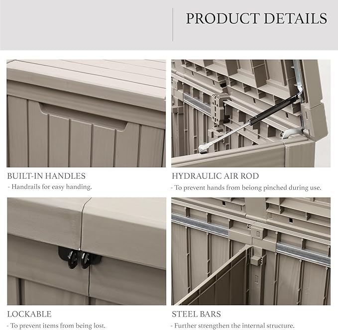 - Large Storage Box: Introducing our top-tier outdoor deck box! Made from anti-oxidation resin, it’s waterproof, fade-resistant, and spacious. Ideal for storing a variety of items, from tools to furniture and comforters.