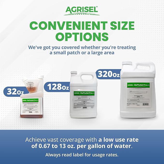 - CONVENIENT SIZE OPTIONS: We've got you covered whether you're treating a small patch or a large area; Pick from 32 ounces, 128 ounces, or 320 ounces to best suit your needs; PLEASE NOTE: 3-pack of disposable is included with purchase and weed sprayer is sold separately