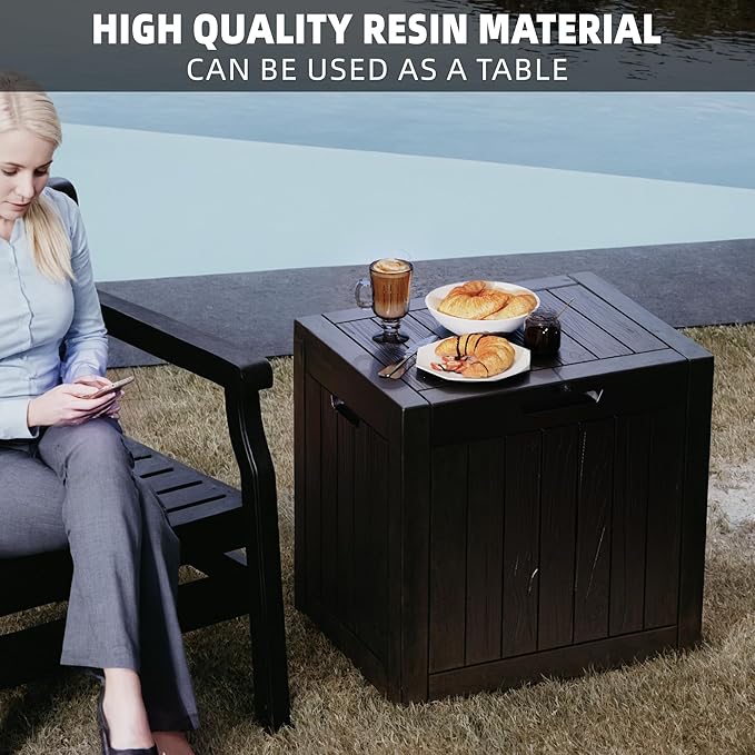 - 【Ample Storage Capacity】This outdoor storage box offers 30 gallons of spacious storage, ideal for organizing garden tools, pool noodles, outdoor cushions, and patio accessories. Its dimensions of 22.09"L x 17.09"W x 20.87"H make it a versatile small outdoor storage box for keeping your deck, garage, or balcony tidy and clutter-free.
