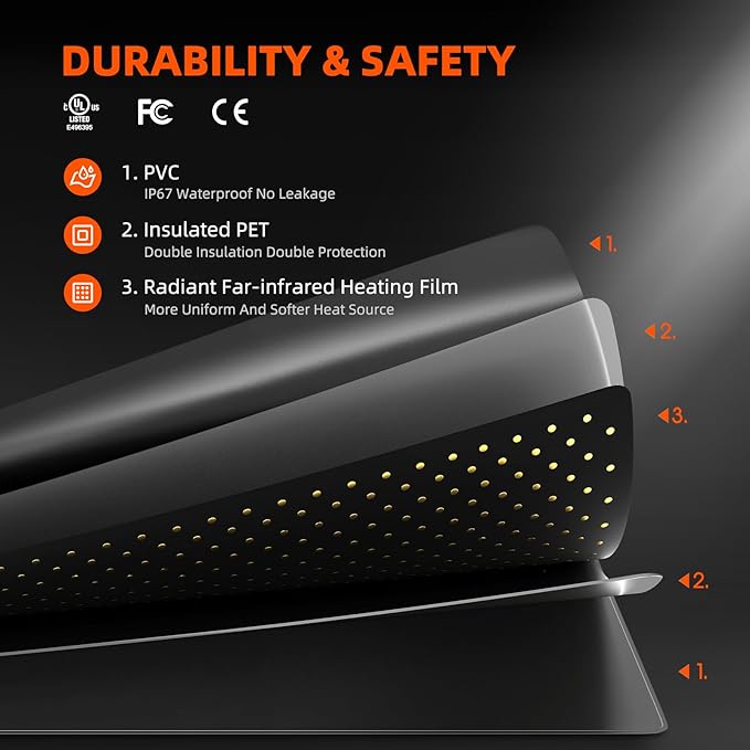 - PREMIUM MATERIAL & RELIABLE QUALITY: The plant heating pad has a five-layer structure, the outer layer is made of heavy-duty PVC material, and the intermediate heating film is wrapped in a double-layer insulating PET layer, which complies with MET and UL standards, and has multiple protections. It is not easy to be damaged, safer to use, sturdy, and durable, with a service life of more than 30,000 hours
