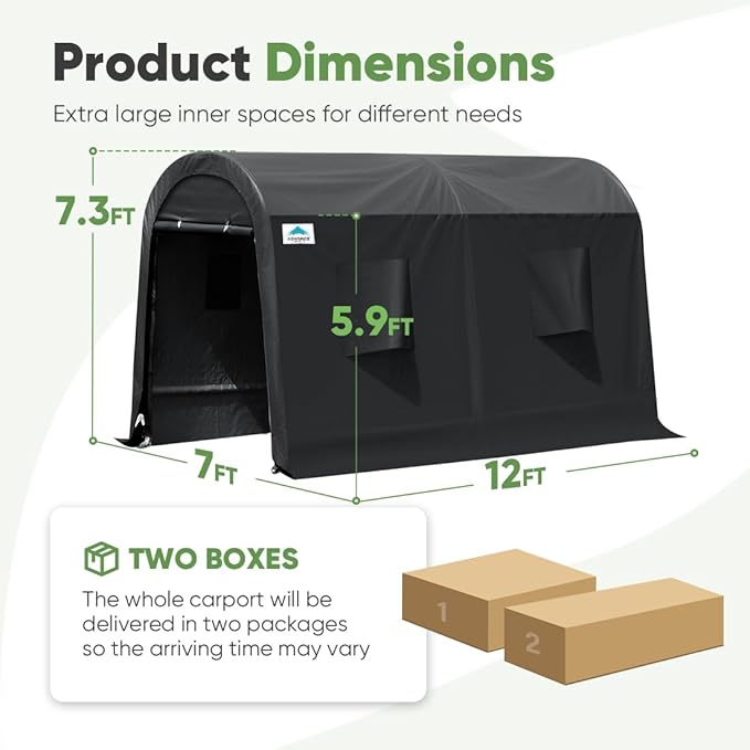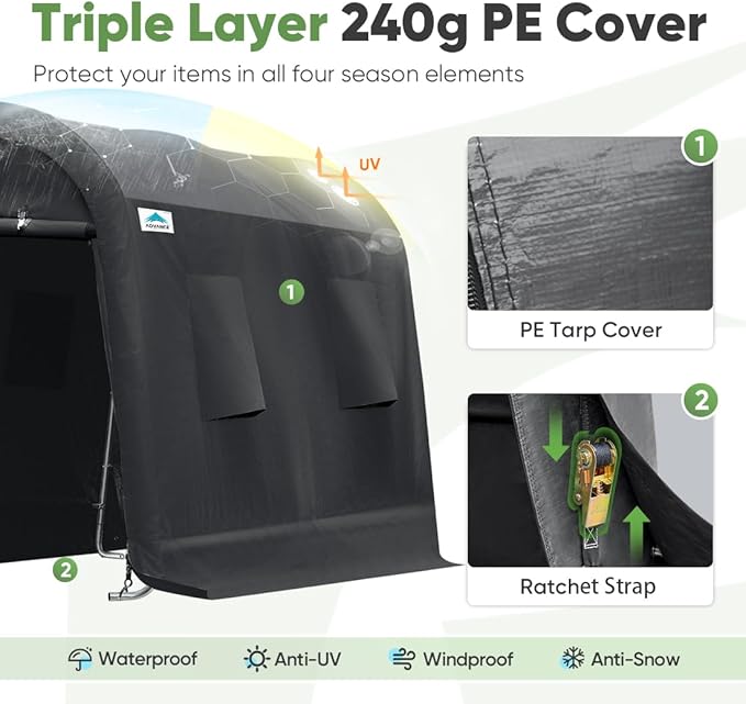 - 【Versatile Usage】✔The portable shelter can serve as storage for boats, ATVs, trucks, or vehicles. It’s also suitable for storing large machinery, firewood, or gardening tools.